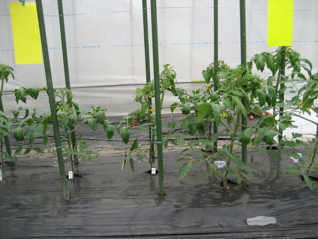ハウスは3月上旬に定植したトマトが順調に生育しています。